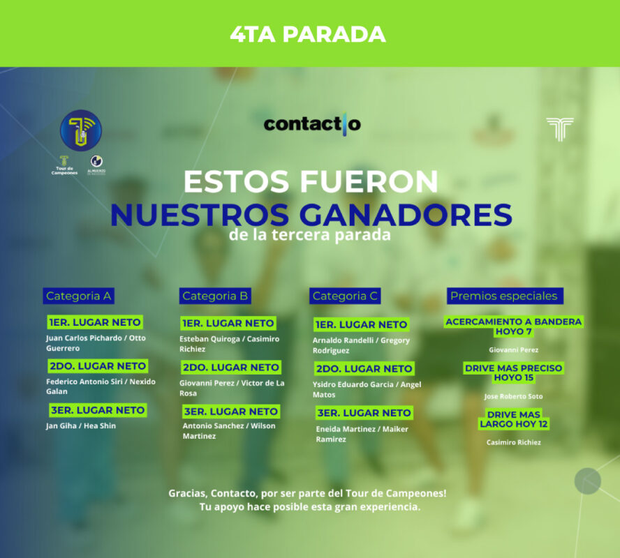 En cada parada, se premian los tres primeros lugares en categorías A, B y C, además de reconocimientos especiales como drive más largo, drive más preciso y acercamiento a bandera. Los ganadores avanzan a la gran final.